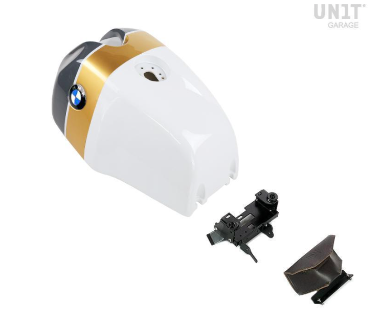 Depósito nineT/7 : El tapón del depósito y la bomba de gasolina siguen siendo los originales de tu moto, la luz de reserva seguirá funcionando, no tendrás que manipular nada, el kit es completamente reversible. El depósito de nailon se suministra pintado y completo con adhesivos transparentes. (en la versión blanca deben adquirirse por separado) El filtro de carbón activado (bote) original sigue siendo el original. Todos los soportes para la fijación del depósito se suministran en el kit. La capacidad es de 18,5 litros, el depósito de garaje nineT/7 Unit pesa 2 kg menos que el original.
