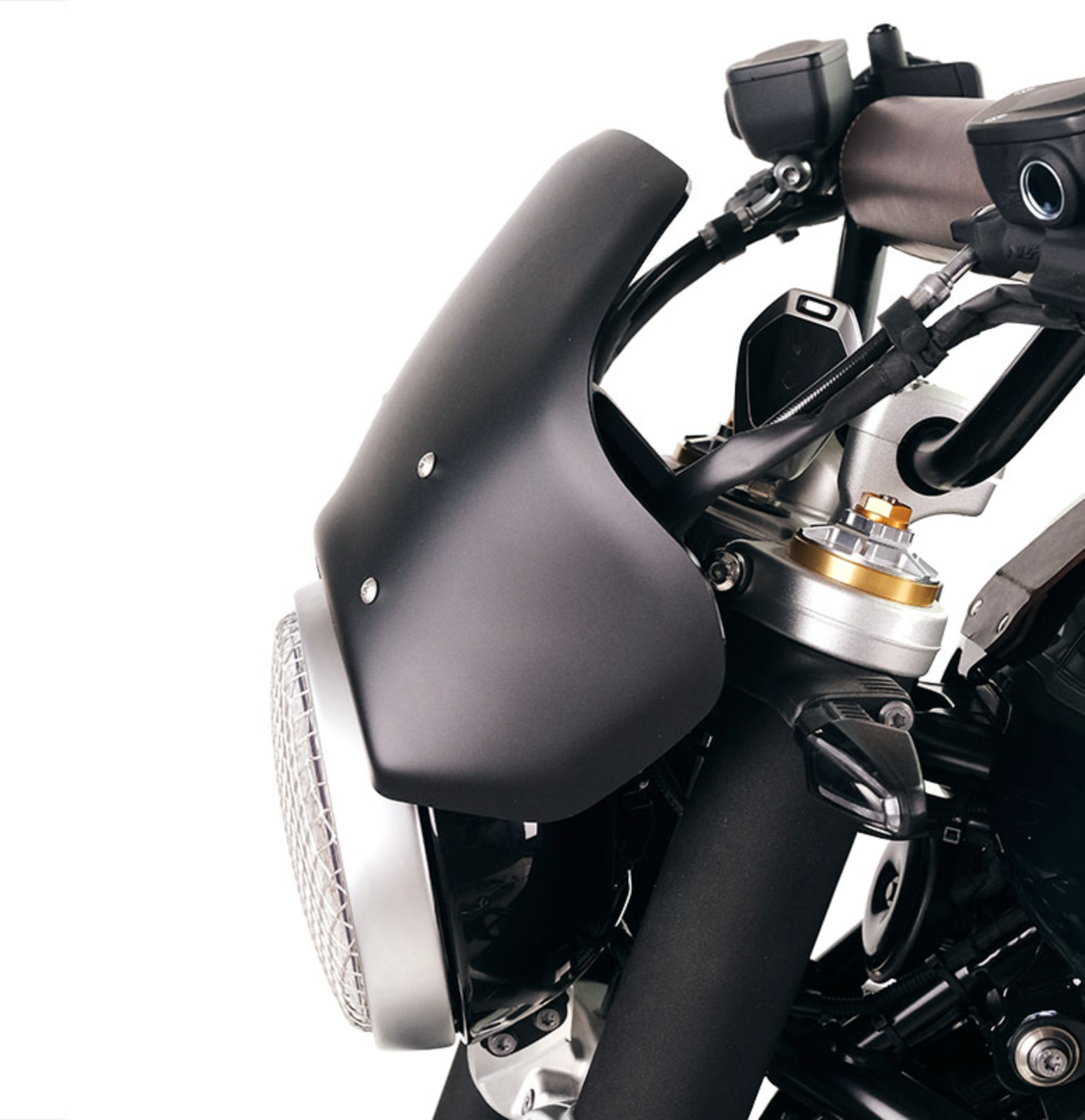 Viene completo con soporte y herrajes, listo para un fácil montaje. Se integra perfectamente con la instrumentación original de la motocicleta y mejora el confort de conducción.